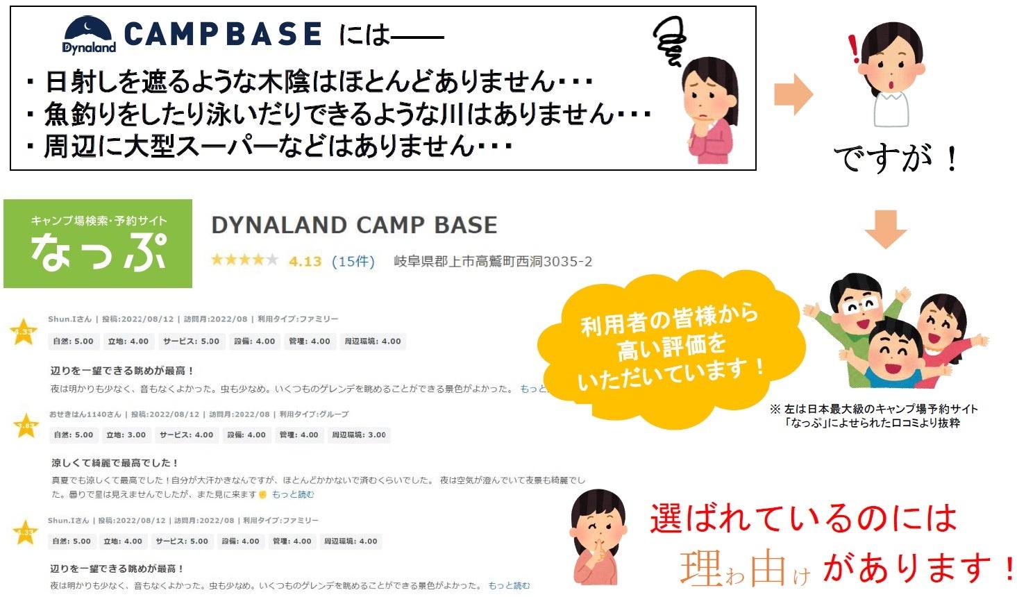 「Dynaland CAMP BASE」が選ばれている理由(わけ)