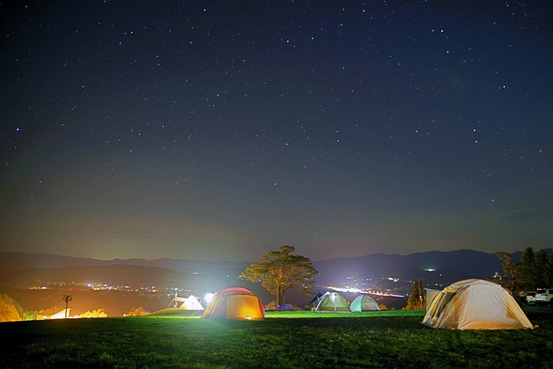 ロマンチックな夜のキャンプ場で星空観賞!