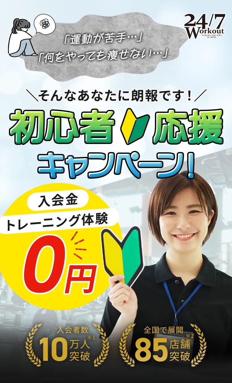 そこで私たち24/7Workoutは9月30日(月)までの期間限定で、初心者を応援するキャンペーンをご用意しました。