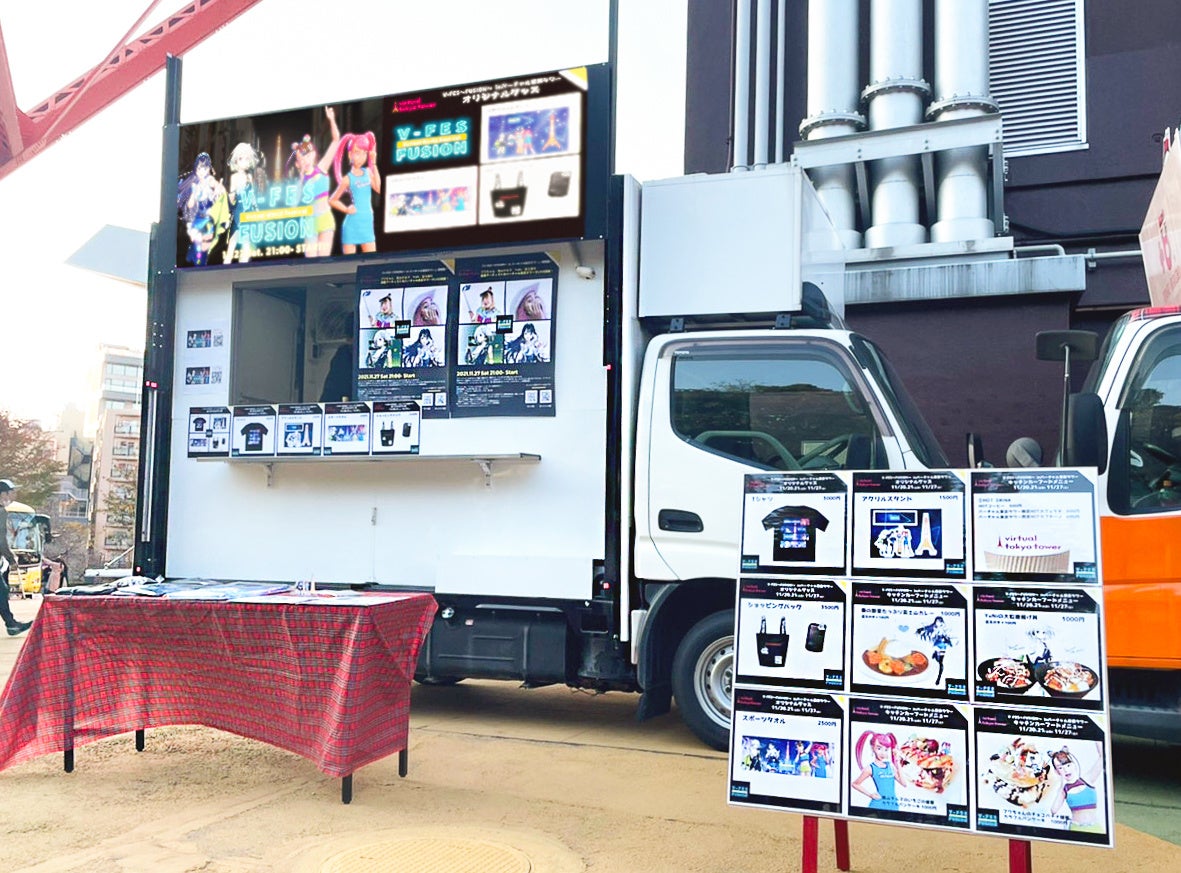ビジョンズ株式会社(本社:東京都品川区、代表:岩野竜志)の運営する大型LEDビジョン搭載キッチンカーレンタルサービス『エンタカー』が、2021年11月27日(土)に東京タワーで開催されたイベント「V-FES~FUSION~inバーチャル東京タワー」で出演アーティストのコラボグッズ販売ブースとして活用されました。