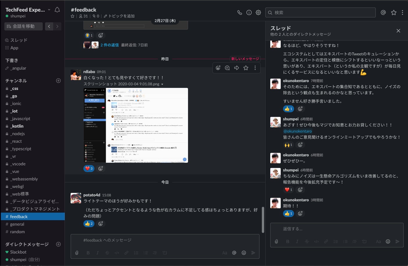 (以下参考画像:TechFeedエキスパートコミュニティのSlack)