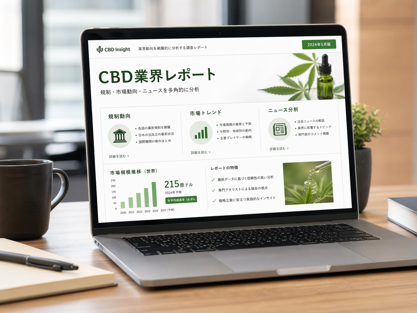 四半期に一度、国内外の規制・市場・報道・実務論点を整理。情報の非対称性を埋め、CBD市場をより正確に捉えるための判断材料を提供