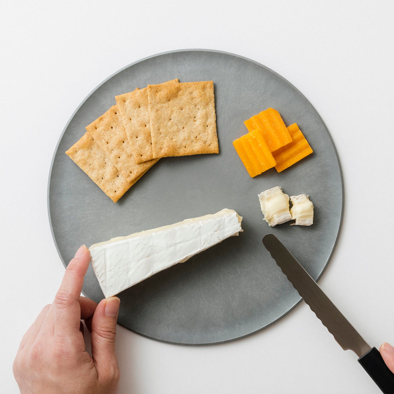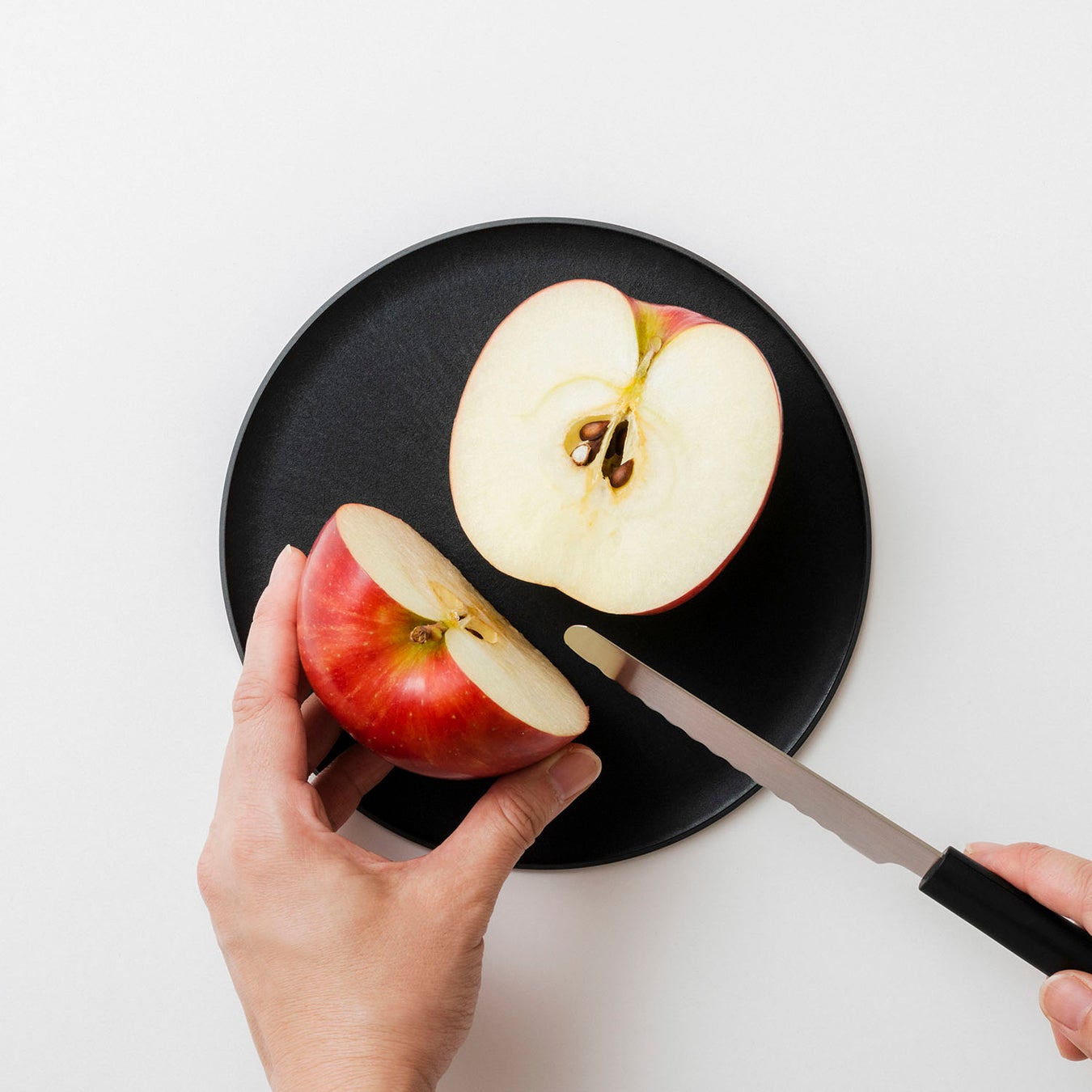 野菜スティックを、フルーツを、パンを、おやつを。卓上でさっと切り分ける。まな板になるお皿と、この小さなナイフがあれば、調理がもっと気軽になります。お子さんのはじめての包丁にもおすすめです。
