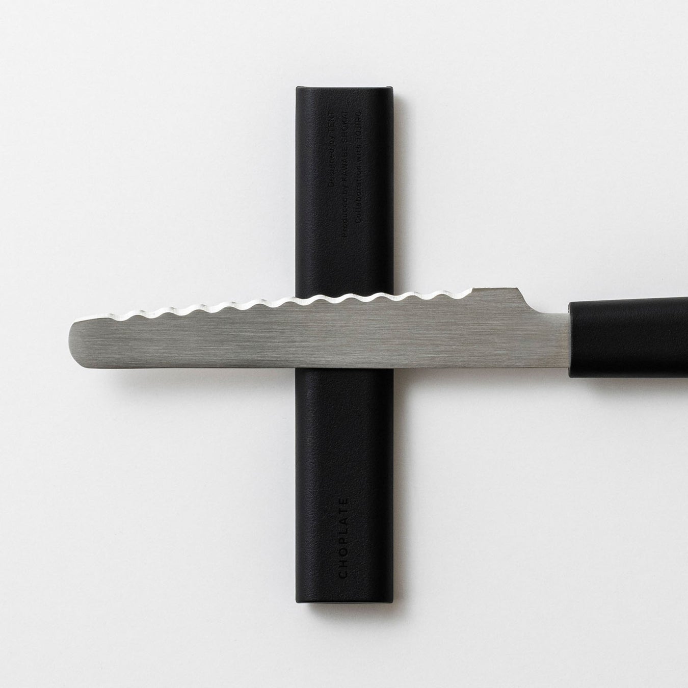 株式会社テント(東京都目黒区)と大阪のプラスチック成型加工メーカー 株式会社 河辺商会(大阪府堺市)が試行錯誤のうえたどり着いた『まな板になるお皿CHOPLATE(チョップレート)』シリーズ。累計販売数 約6万枚、大好評のこのシリーズと一緒に使いやすいミニナイフが、新潟・燕三条の藤次郎とコラボレーションすることでついに完成しました。