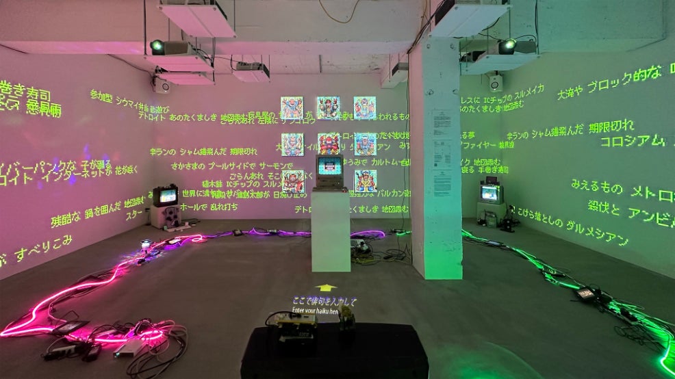 東京会場のみの限定展示として、たかくらかずき氏による「みえるもの あらわれるもの いないもの」をご紹介します。本展示は、作者・鑑賞者・AIが共同し、俳句によって新たな妖怪を召喚し、NFTとしてオンラインに解き放つ儀式的なプロセスを表現しています。