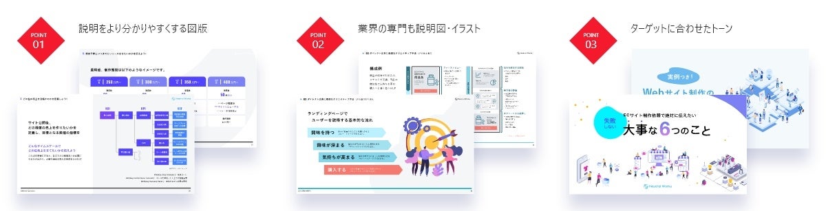 より効果的に伝わるイラスト・図版や、業界の専門知識に関する説明図・イラストの作成、企業イメージやターゲットに合わせたデザイントーンづくりもお任せください。