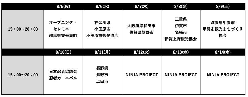 参加団体:日本忍者協議会正会員団体(忍者ゆかりの地方自治体)