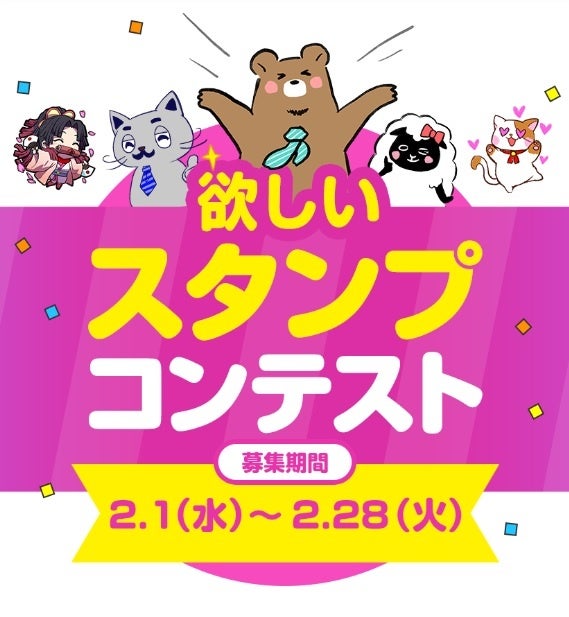 そこで今回、新スタンプ案を会員の皆様に考案・評価していただく「欲しいスタンプコンテスト」を開催いたします!ランキング上位に入ったスタンプ案は"新規描き下ろしイラスト"で正式採用されるかも?皆様からのたくさんのご応募お待ちしております。