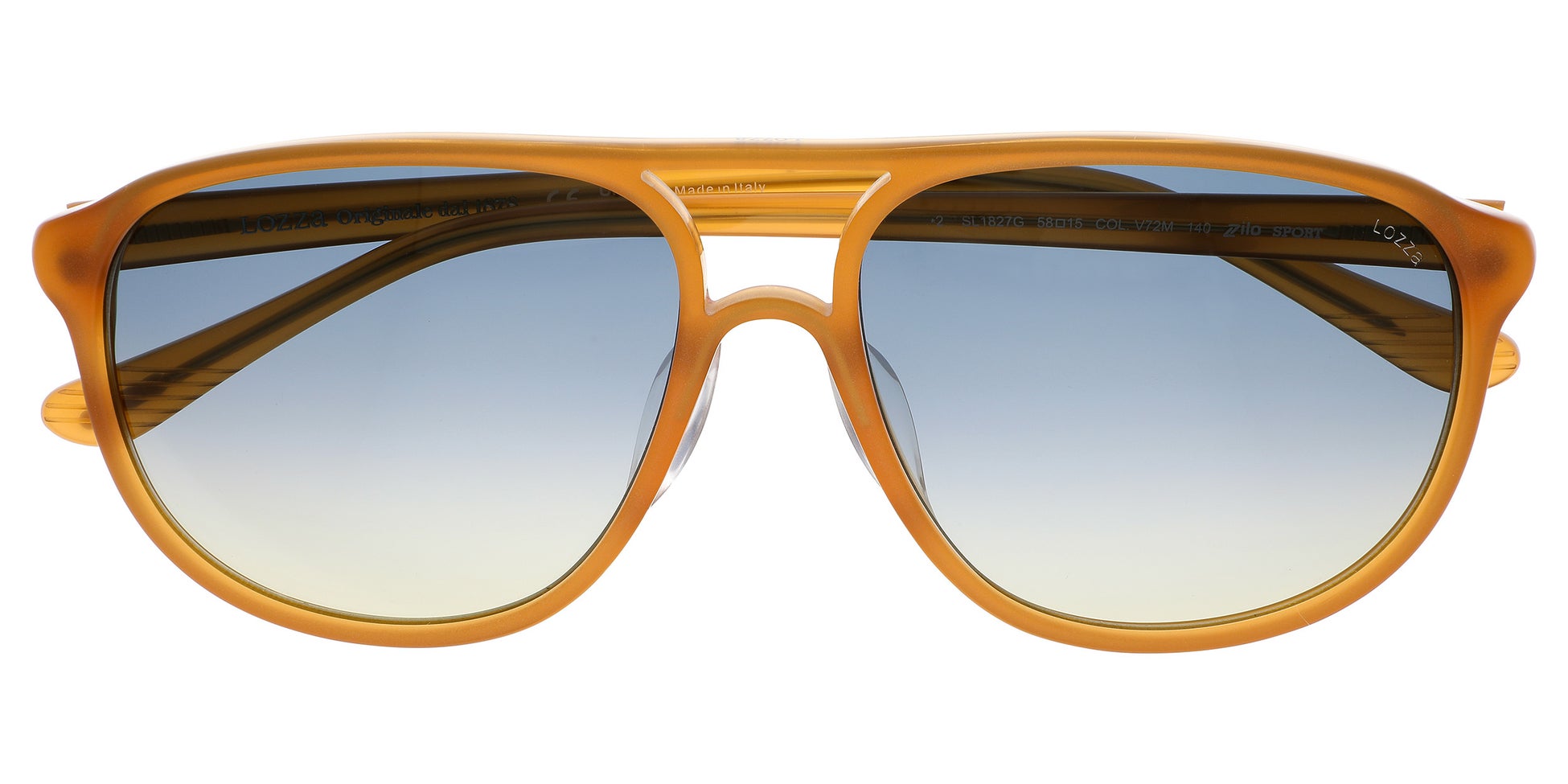 LOZZaのアイコンモデル「ジロ スポーツ」。ブランドの歴史的ヒーローモデルは、デザイン性と機能性を兼ね備えた1本。アセテートの形状を安定させる為にフロントに挟み込まれたメタル芯は、同時に美しい輝きでクリアアセテートからその姿を覗かせます。イタリアンクラシックを感じるダブルブリッジのデザインとビンテージ感たっぷりなカラーリングです。