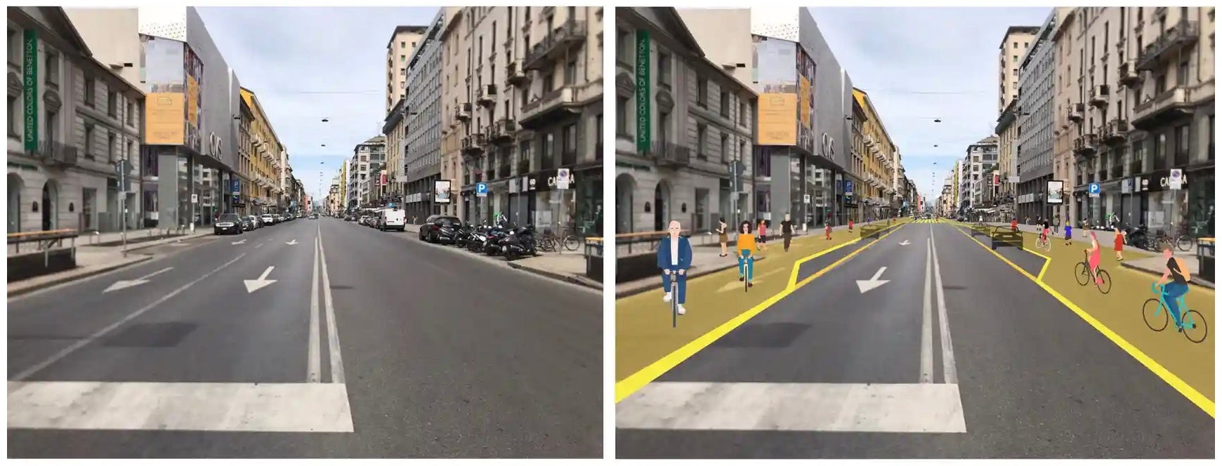 ミラノは、新型コロナウイルスにより、イタリア国内で最も大きな被害を受けた都市のひとつです。15km圏内に140万人が居住する密集都市で、住民の55%が通勤に公共交通を利用しています。全国的な都市封鎖で自動車の交通量も30~75%減少していますが、移動制限が緩和されると、混雑した公共交通を避けて自動車を利用しようとする人の増加が懸念され、その抑制がねらいとされています。平均通勤距離は4km以内であることから、自動車から自転車や歩行などの通勤形態への移行は可能だと見込まれています。ニューヨーク市の交通局長を務めたこともあるジャネット・サディク・カーン氏は、「都市をいかに“リセット”させられるか、その良い戦略を提示するという意味で、ミラン市の計画は非常に重要だ。道路を新しい目線で捉え、実現させたい結果に適うものになっているかどうかを確かめられる千載一遇のチャンスだ。すなわち、ある地点間の車での移動がなるべく早い時間で可能になっているかということばかりではなく、誰もが安全に移動してまわれるようにもなっているのか、ということだ」などとコメントしています。