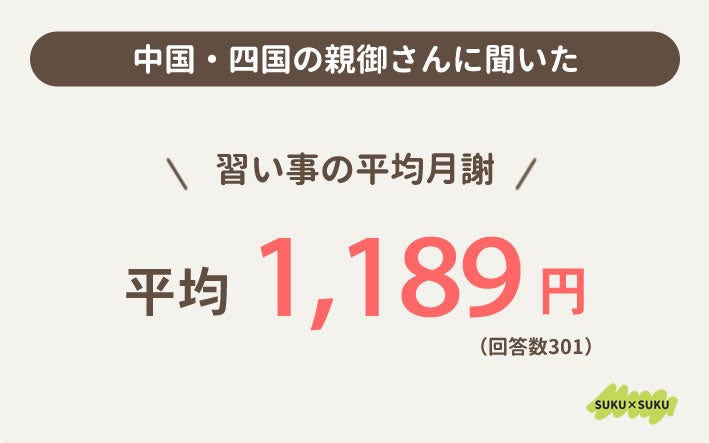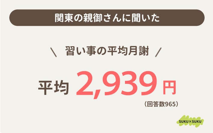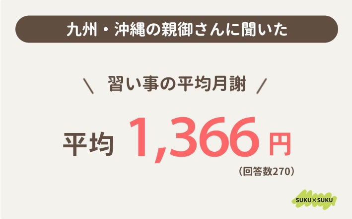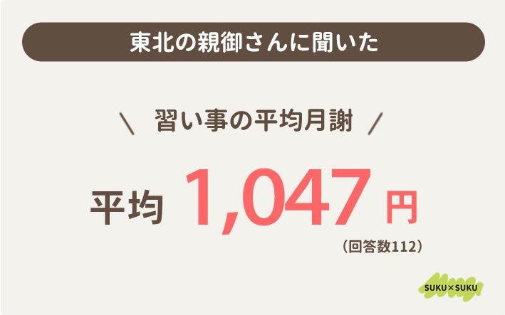 株式会社シーク(本社:神奈川県横浜市中区、代表取締役 杉山 裕治)が運営する国内最大級の子どもの習い事メディア「SUKU×SUKU(スクスク)」は、0歳から18歳の子どもを持つ延べ1008人の保護者を対象に、全56ジャンルの習い事平均月謝についてのアンケートを実施。子どもが現在通っている、または過去に通っていた習い事の月謝について地方別の調査結果をまとめました。