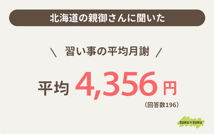 北海道の習い事にかける平均月謝は、4,356円でした。平均月謝の金額が高かった習い事のジャンルは、以下のとおりです。
