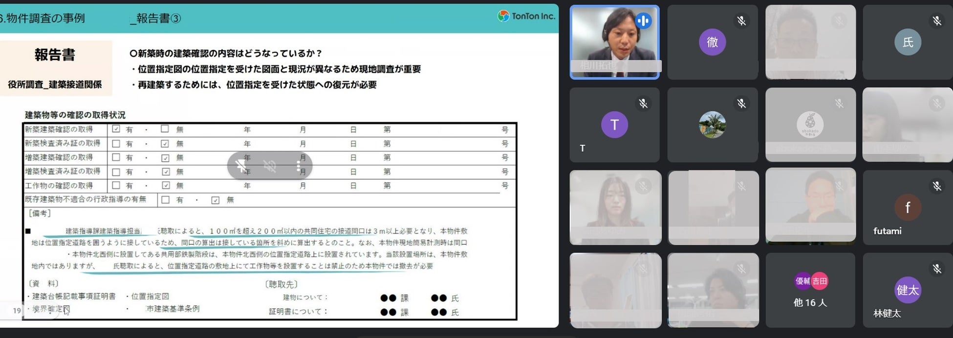 本勉強会は、不動産調査員の方々が最新の情報とスキルを身につけ、不動産トラブルを回避に貢献すると考えています。今後も当社ではお客様に寄り添いながら、不動産業界の活性化を目指しDX時代の変革に応じた新しい不動産業界に貢献して参ります。(写真:勉強会の様子)