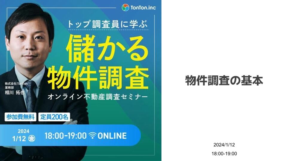 □【リピートされる不動産調査】オンラインセミナー開催予定日 ・第二回講座・2024年1月12日 (金)18時~ 講師:相川 ※第一回目は開催済み |