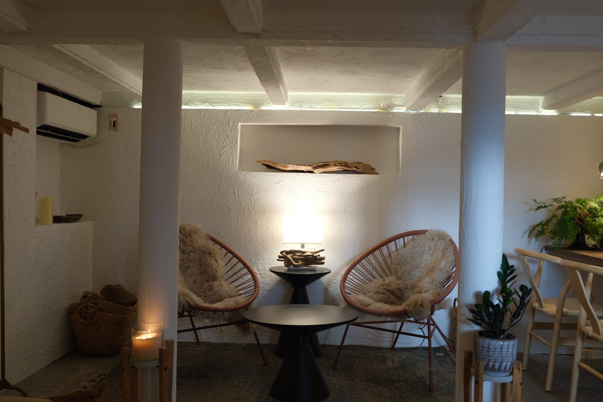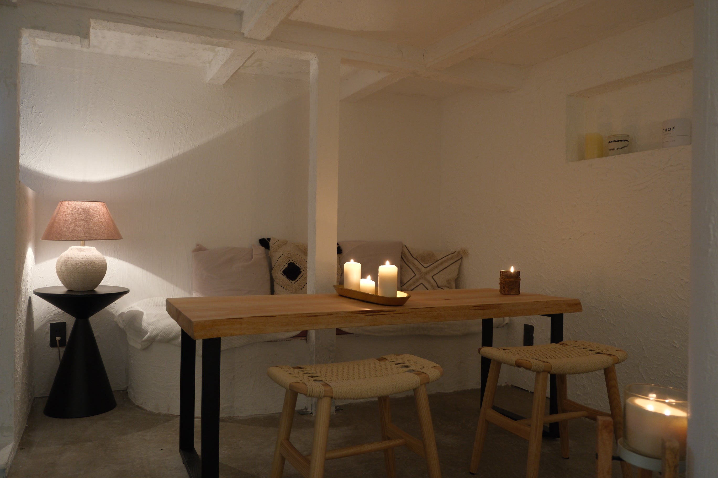 奥の洞窟スペースでは通常11席あり、最大15名ほどで貸切可能。カウンター席やテラス席も含めた一棟貸切も可能ですので、各種イベントやオフ会。ママ会、二次会などなど。お気軽にご相談くださいませ。