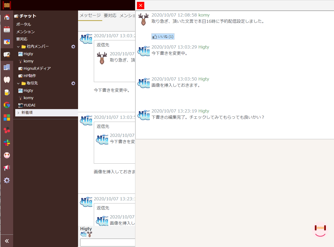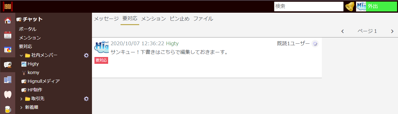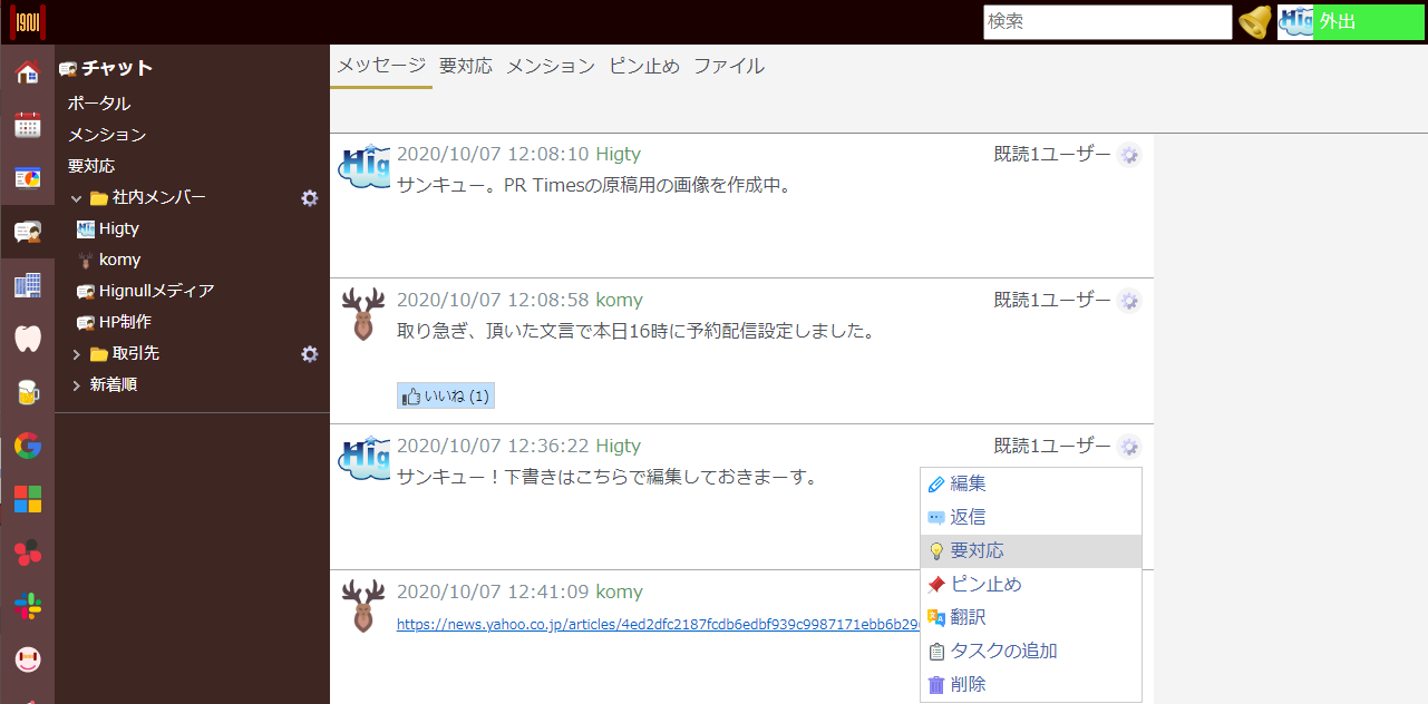によって業務を標準化して漏れなく仕事を行えるようにする機能もあります。チャット機能の利用後にタスク管理も行いたい場合はHignullの設定の変更のみで簡単にタスク管理機能を組織に導入できます。