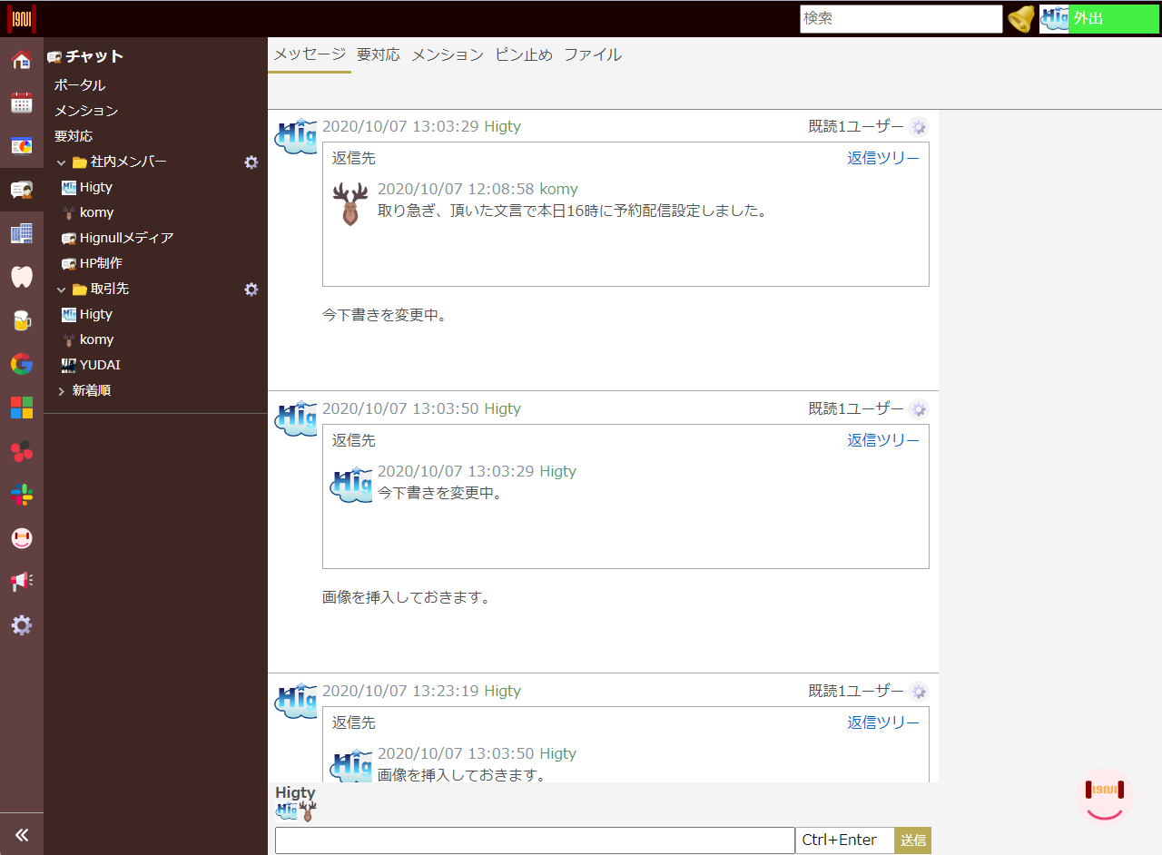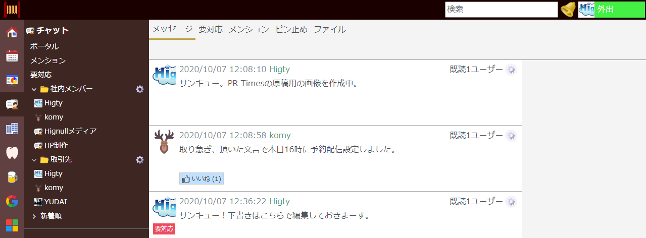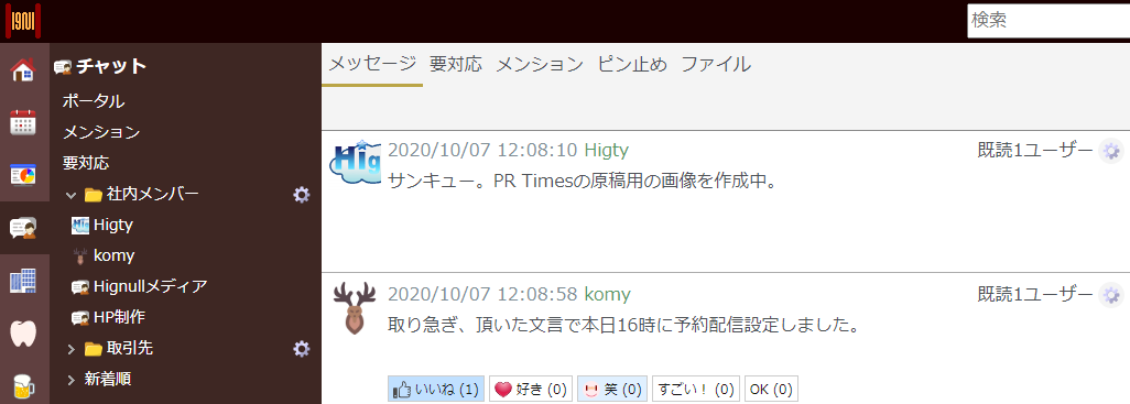 チャンネルごとの既読機能のON/OFFの設定が可能です。SlackやChatworkでは既読管理ができず相手に伝わっているか不明なまま仕事を進めざるを得ません。Hignullでは既読を相手と共有する機能があるので特にお互いの迅速なコミュニケーションが必要な職場ではスムーズなコミュニケーションが実現できます。逆に既読が相手に知られると息苦しい、ある程度各自のペースで仕事をする方が向いているという文化の会社もあります。その際にはこの機能をOFFにしてチャンネルを運営することが可能です。