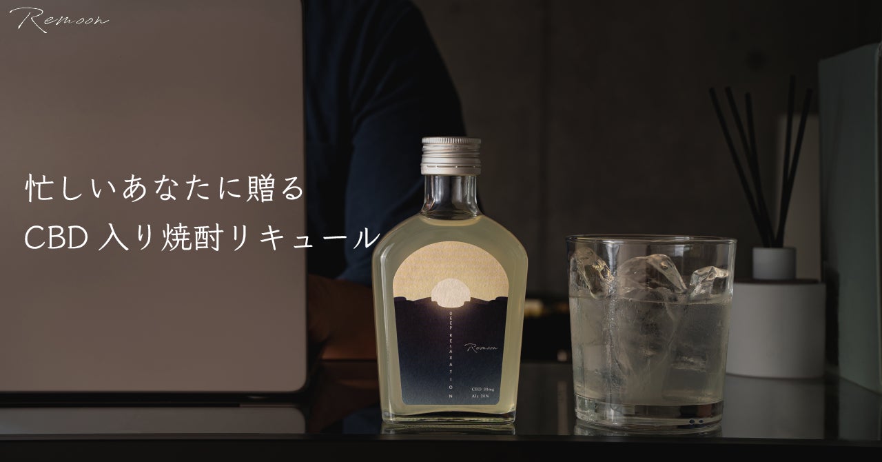 「Remoon(リムーン)」は、頭も身体も日々フル活用して働いているビジネスパーソンに向けたCBD入り焼酎リキュールです。酔うためのお酒ではなく、自分の心と体のためを思って、1日1杯だけ飲むようなお酒です。