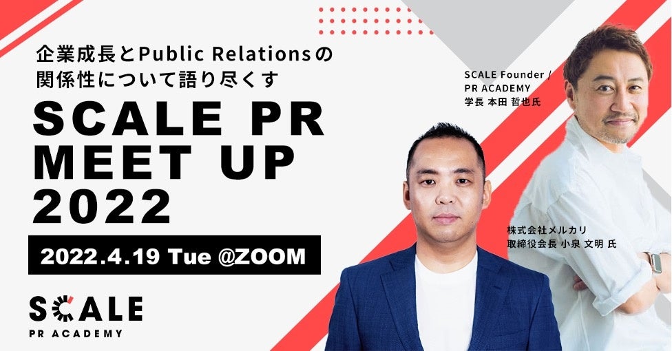 4月19日(火)メルカリ取締役President(会長) 小泉文明氏登壇 企業成長とPublic Relationsの関係性について語り尽くすオンラインイベント「SCALE PR MEET UP」開催