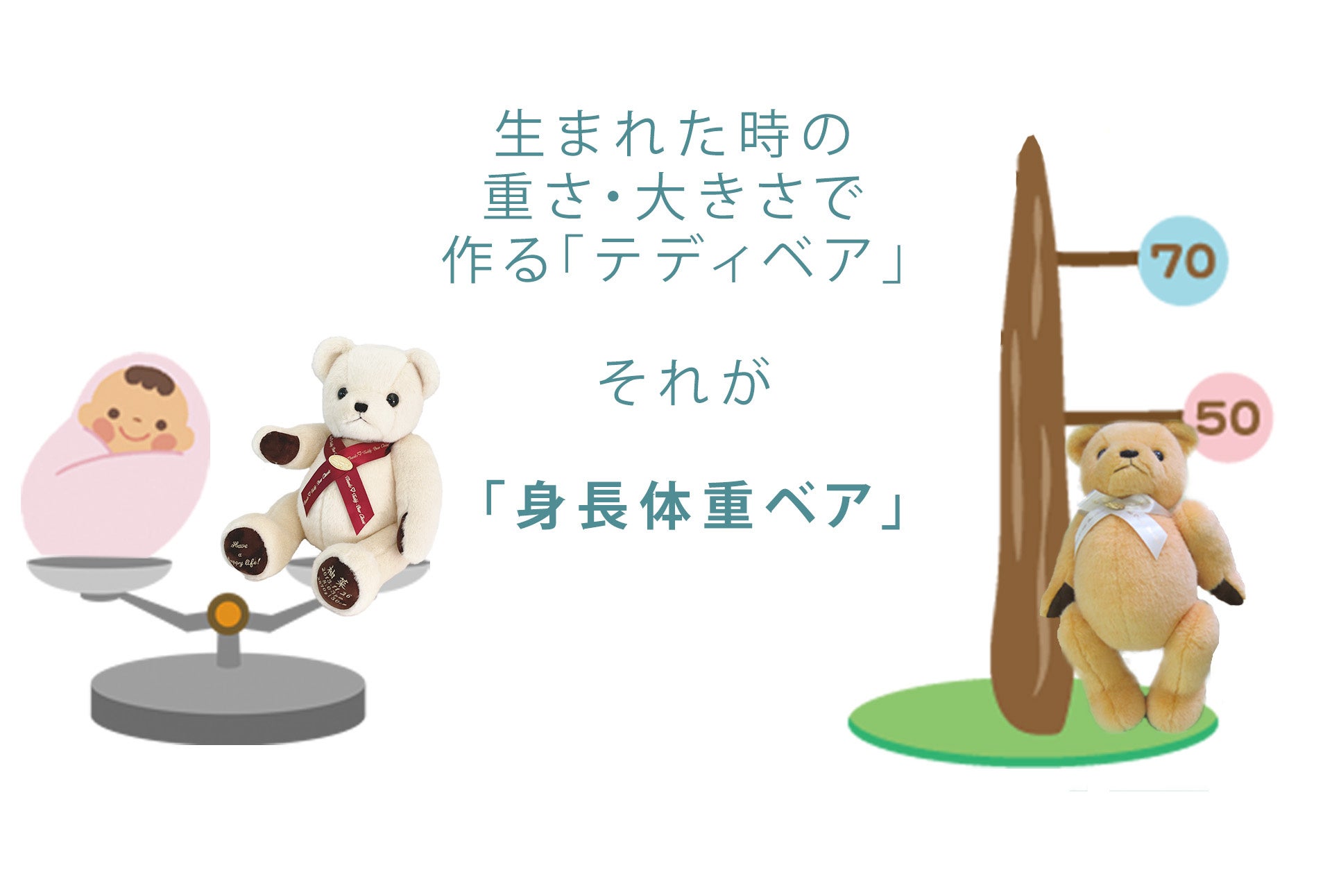 生まれた時の大きさ(Tall)と重さ(Weight)で作るテディベア、「トール&ウエイト」。子どもが誕生した、あの「感動の瞬間」を身長体重ベアに再現できる、あたなだけの特別なテディベアです。
