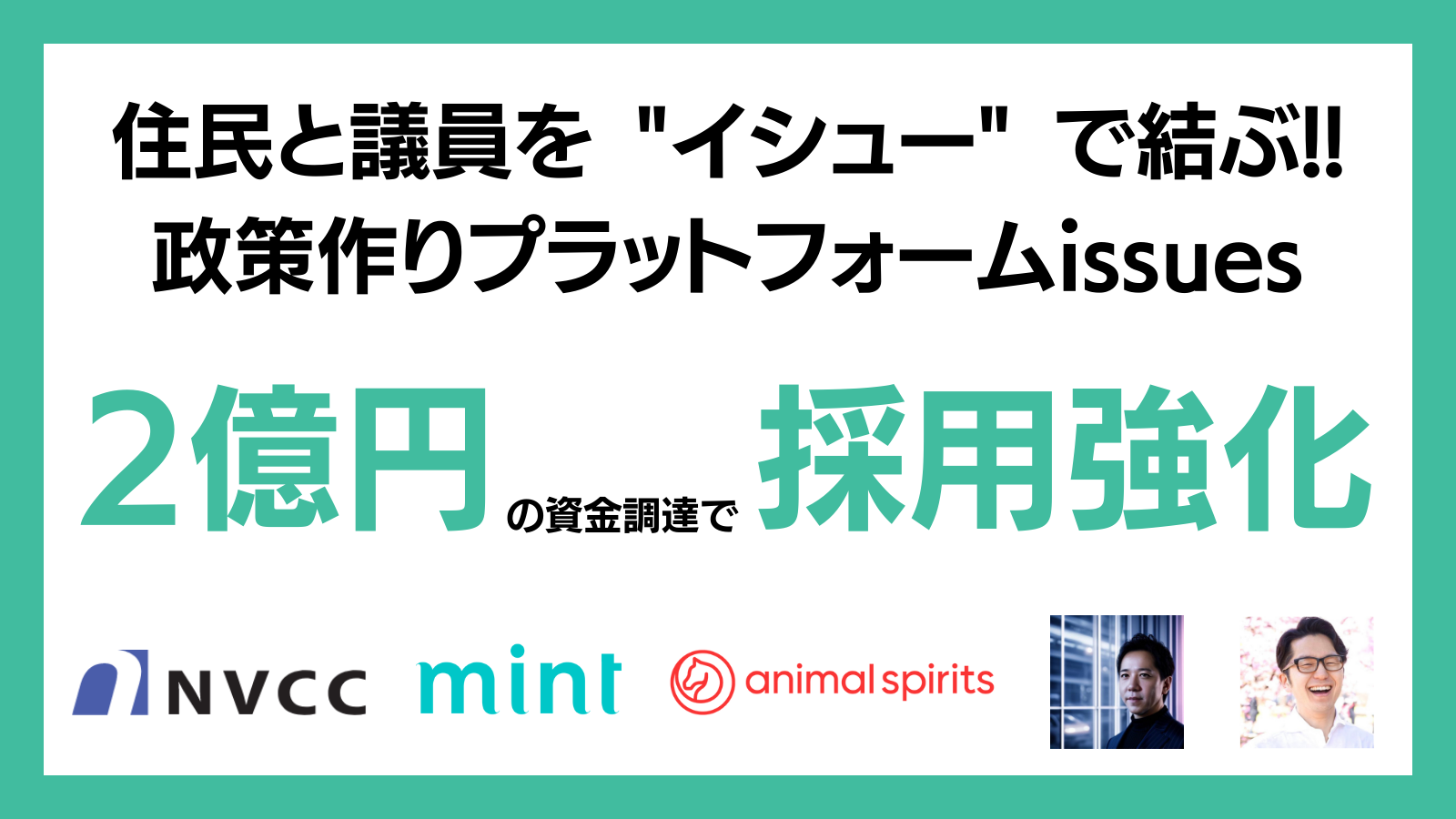 政策作りプラットフォーム「issues」約2億円のシリーズA 1stクローズを実施し採用を強化