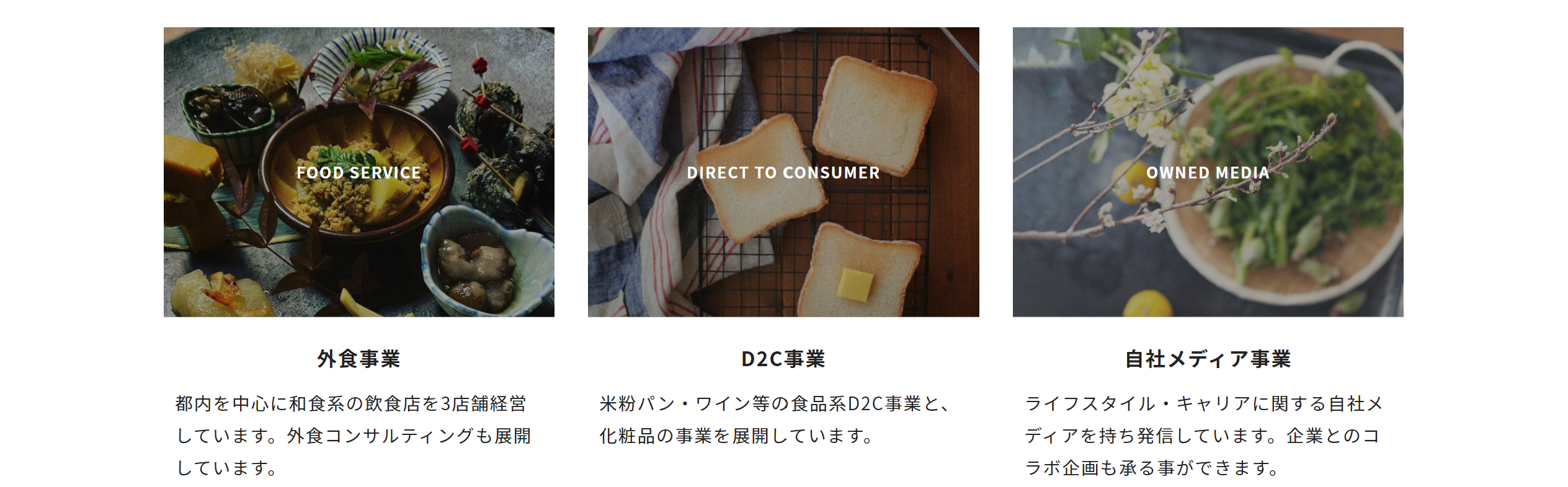 事業内容:マーケティング事業、広告代理店事業、Web制作事業、システム開発事業、動画クリエイティブ制作事業、外食事業