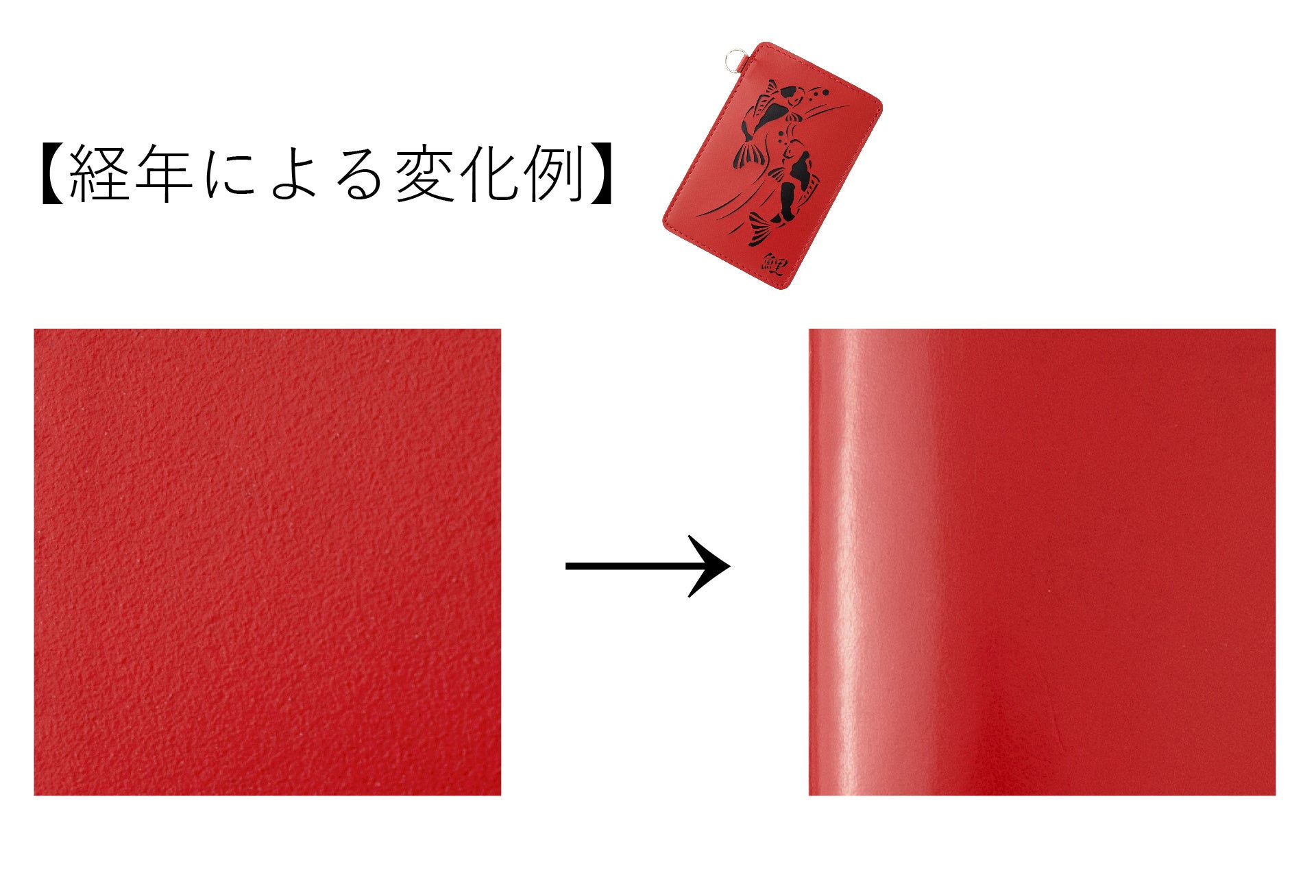 松阪レザーのなかに含まれる良質な油脂は、使い込むことで表面に浮き出され光沢を放ち、味わい深い艶が増してくるため、経年変化を楽しむことができます。