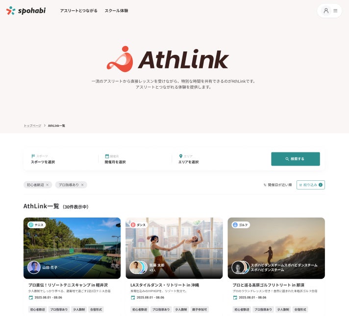 すべてのスポーツを、始める、楽しむ、もっとやる。初心者からアスリートまで幅広い活動のサポートを、「Spohabi」で本格的に開始
