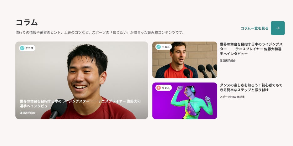 トップアスリートへのインタビュー、効果的なトレーニング術や最新のスポーツ情報など、パフォーマンス向上に役立つヒントが見つかるオリジナルコラムをお届けします。
