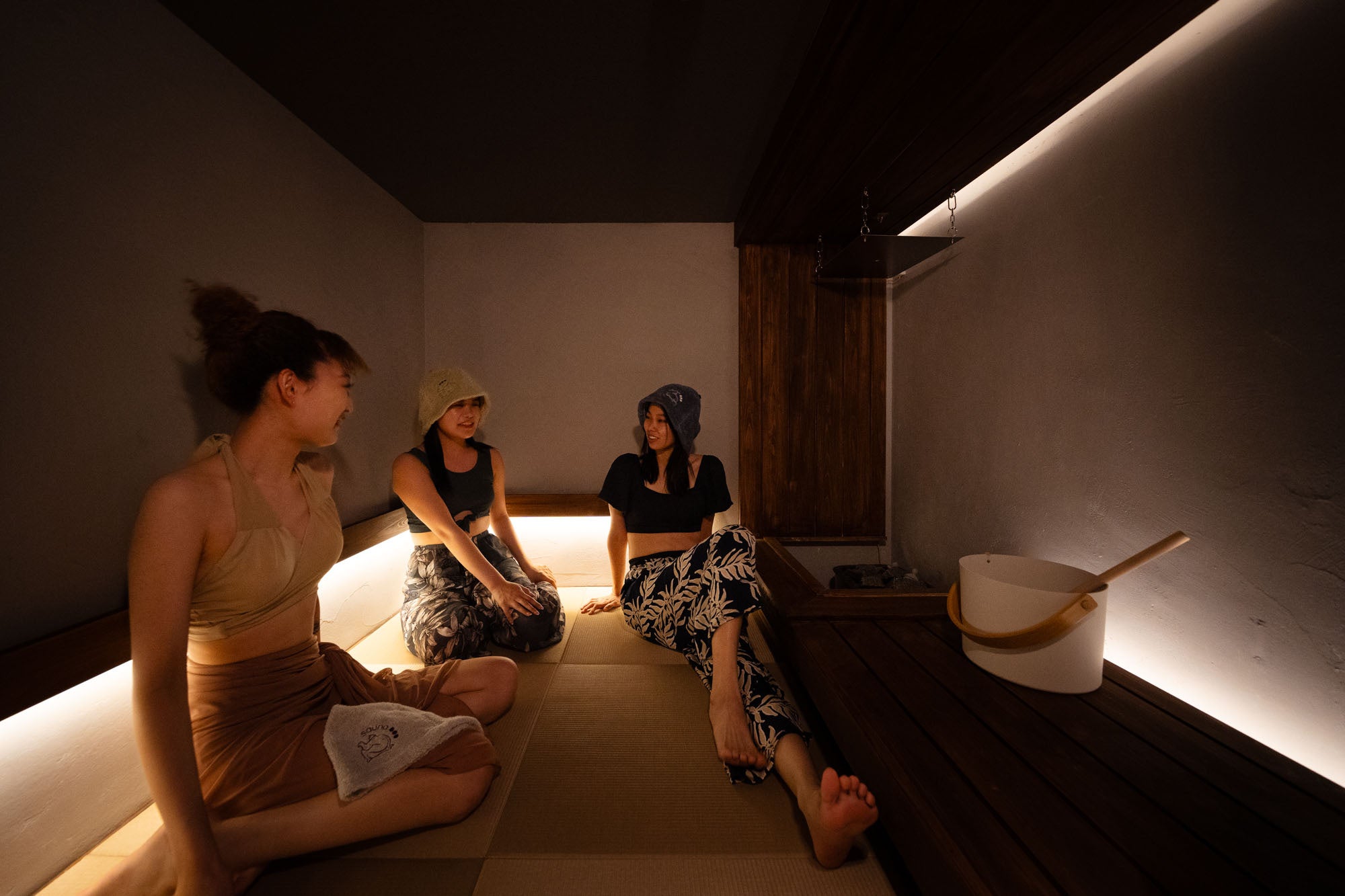 フィンランド式や、銭湯サウナなど、様々なカルチャーを取り入れながら独自の変化を遂げてきた日本のサウナ文化。SAUNA OOOではブランドコンセプトとして、現代的なカルチャーに東洋文化的なエッセンスを取り込むことによる文化の再構築という考えを取り入れており、心理的なコミュニケーションのハードルが下がるあぐら=畳をデザインの随所に取り入れるなど、コミュニケーション×東洋文化を特徴としています。
