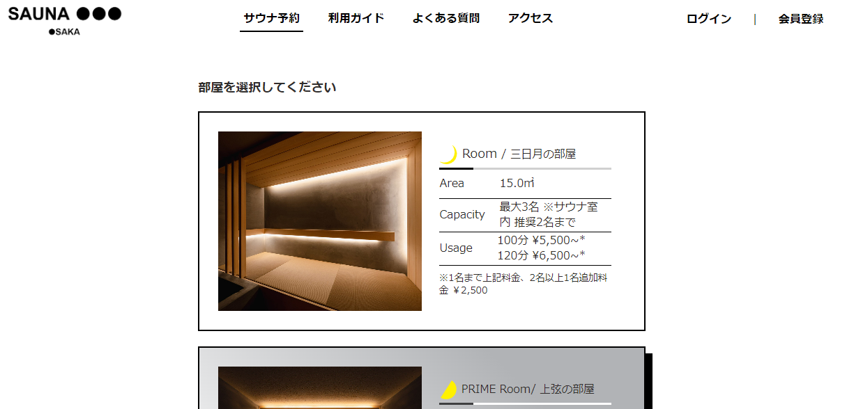 コミュニケーションサウナ「SAUNA OOO(オー)」は自社開発の予約システムでは、よりわかりやすく直感的に操作を行うことが可能です。