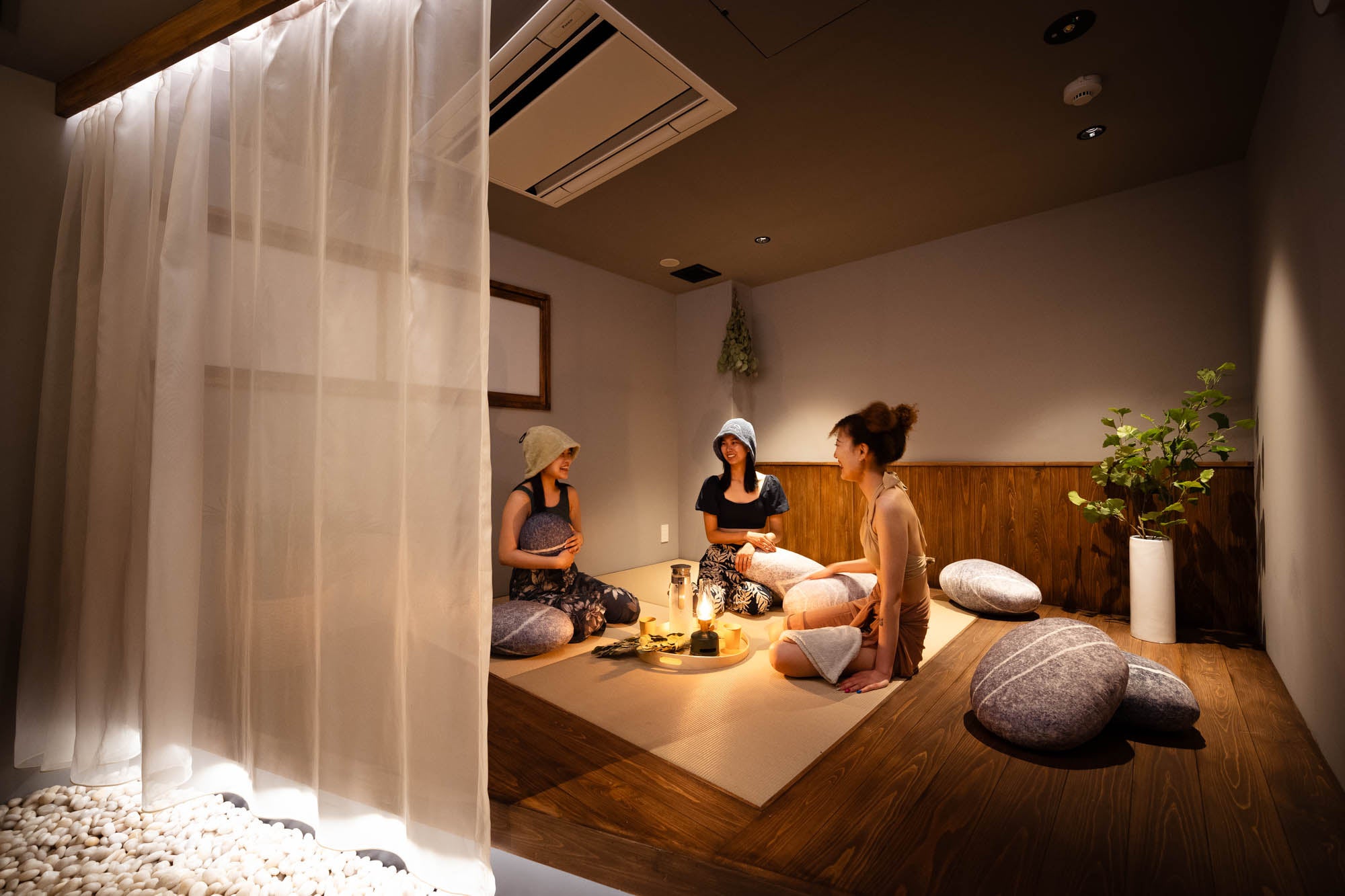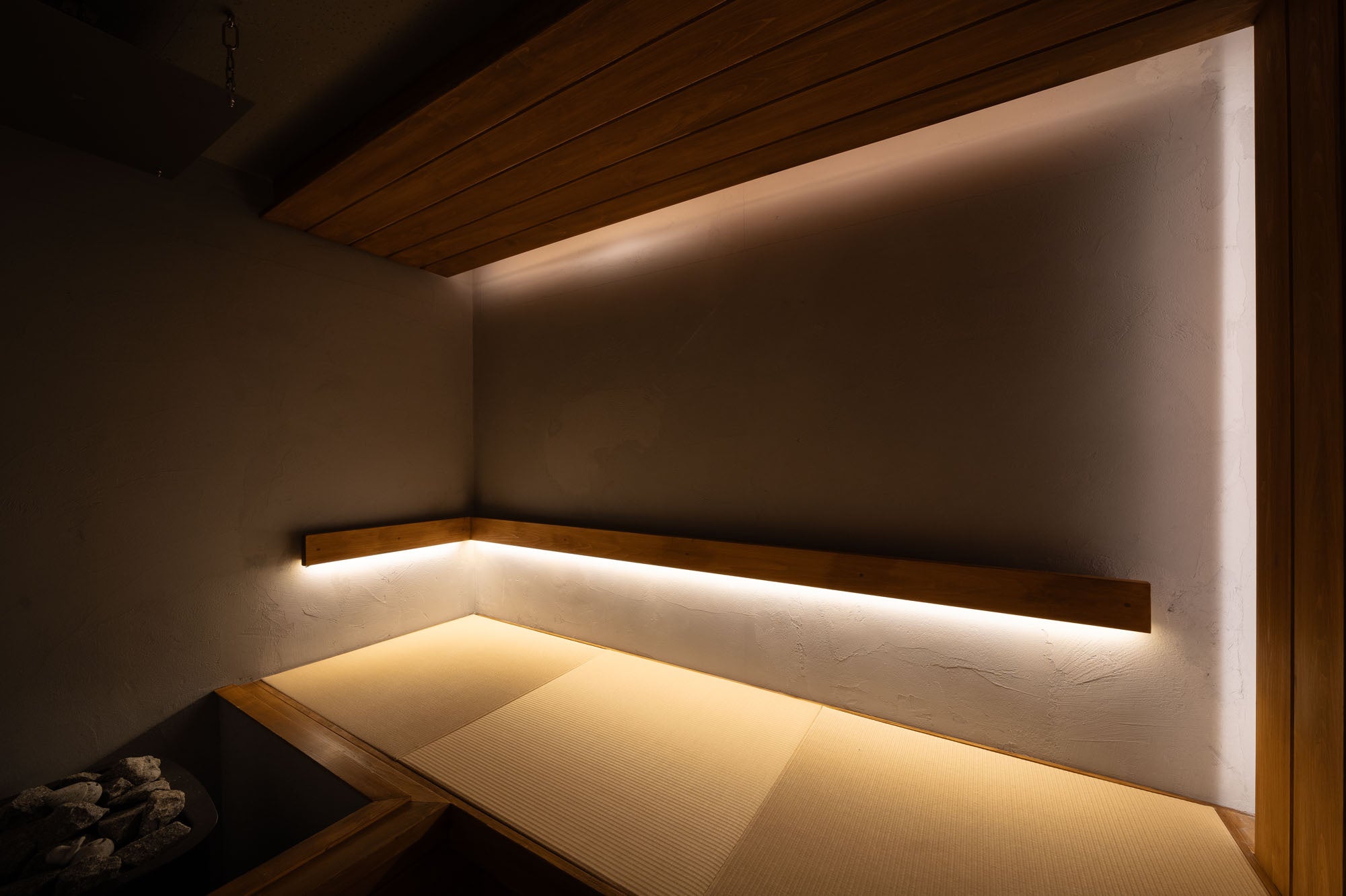 少人数から貸切利用が出来る、完全予約制のサウナです。大切な誰かと過ごす「コミュニケーションサウナ」をコンセプトに、サウナ室、水風呂、休憩スペースまでをコンパクトな導線設計にこだわり、仲間と語り合うひとときに最適な環境をご用意。特に、サウナ室は全室畳張りで自然体に導く形状、広々とした休憩スペースはフラットな小上がりなど、話しやすさにこだわっています。プライベートでのご利用もさることながら、ビジネスシーンでも異なる環境でのブレストでいつも出てこないアイデアが浮かび、チームの関係性も強まるかもしれません。