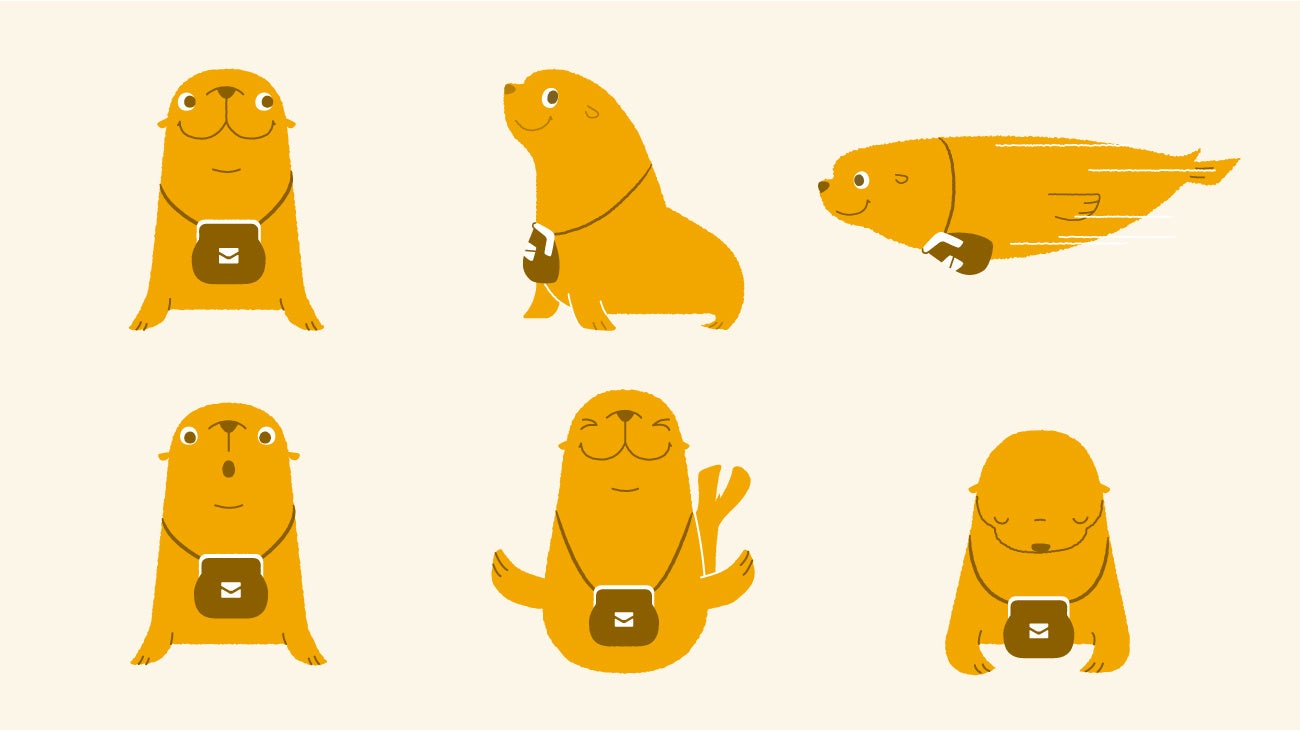 真面目で働き者のトドの男の子です。首にかけたカバンで荷物を届けます。