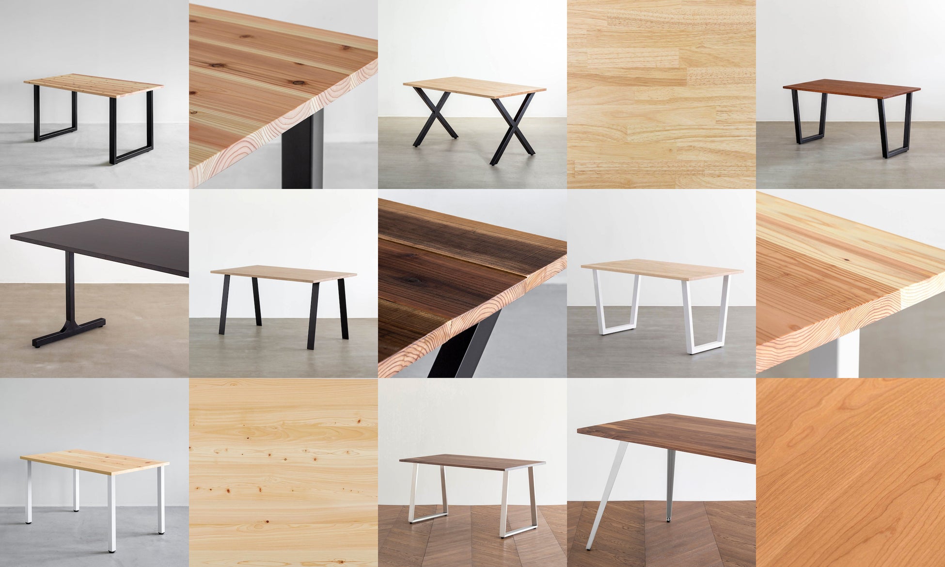 - 13タイプのテーブル脚から組み合わせを選べます