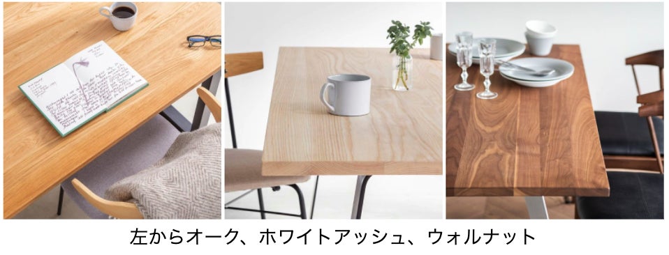 今回のオークの追加により、THE TABLEは約430通りの天板と脚の組み合わせを選ぶことができるようになり、幅広いスタイルから自分にぴったりのテーブルをお作りいただけるようになりました。