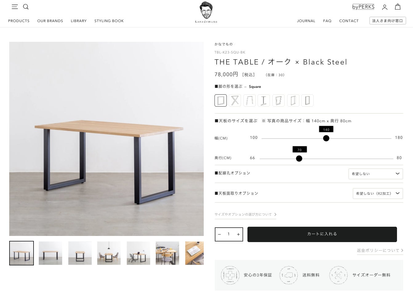 【Kanademono新商品】THE TABLEシリーズに高級木材「オーク」を追加。1cm単位のサイズオーダーが、430通りの天板×脚の組み合わせで可能に。