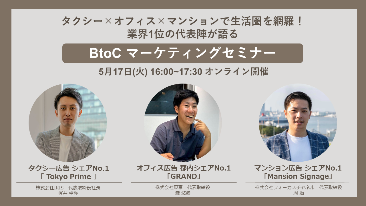 【5/17(火)開催】タクシー×オフィス×マンション 業界1位の代表陣が語るBtoCマーケティングセミナー