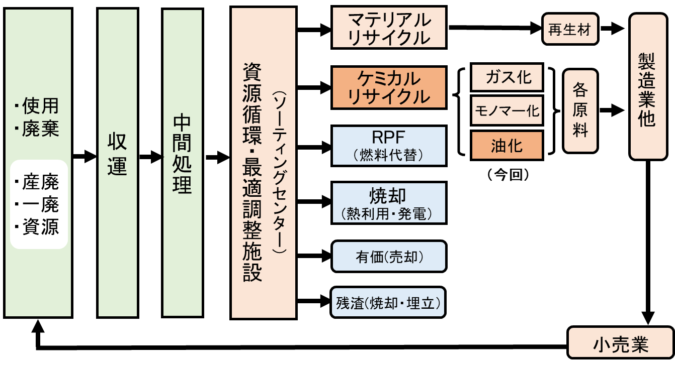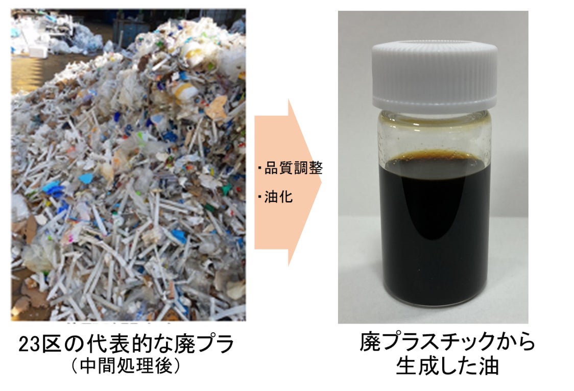 商業施設やオフィス等から出る混合廃プラを良質な石油成分に変換できることを実証