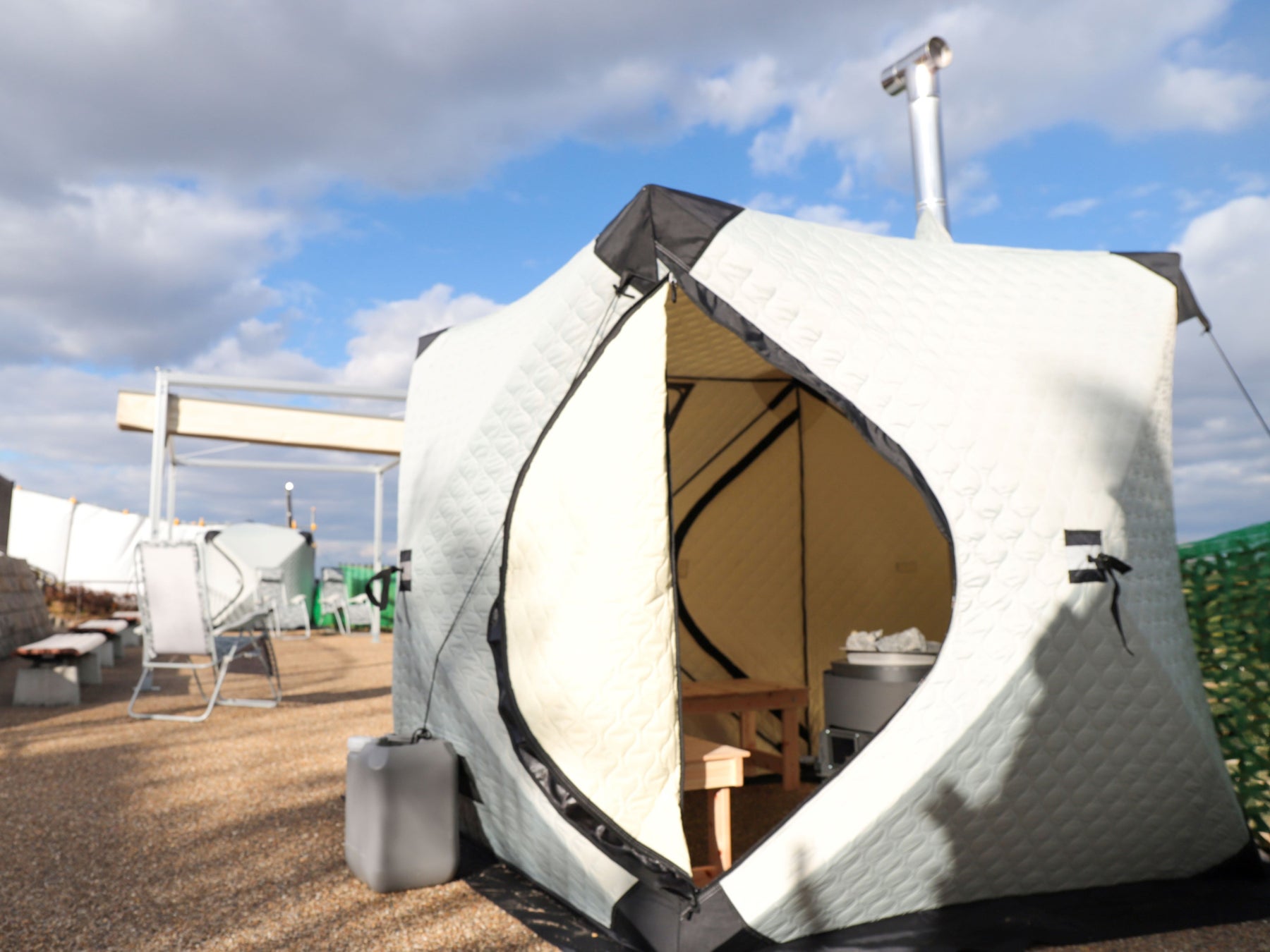 AMBER(T-WOPKS社)製のテント型プライベートサウナ。