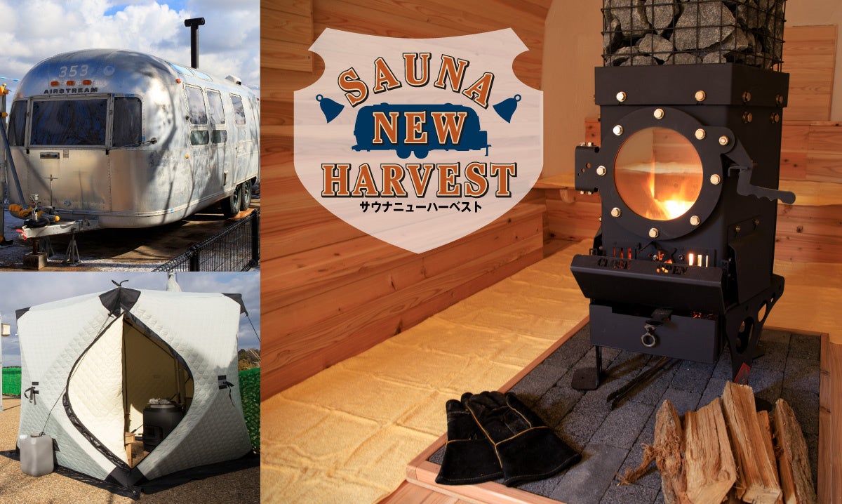 温浴施設とカフェを一体化させた「おふろカフェ」や、キャンプ場・グランピング施設でテント型モバイルサウナの設置が進むなど、サウナ施設の形態が多様化しているなか、ハーベストの丘では西日本初※、全国でも稀なキャンピングトレーラー(エアストリーム)を改造したサウナと、テント型モバイルサウナ、そして自然いっぱいの開放的なスペースで「ととのい」を体験していただけます。
