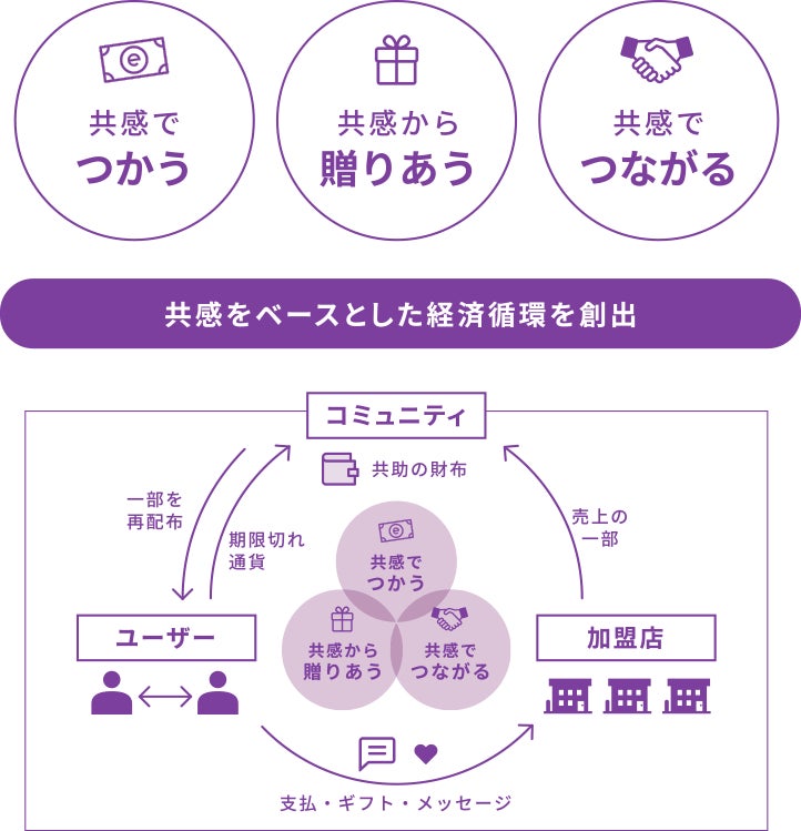 「円から縁へ 交換から共感へ」をベースに、共感が資本になる新たな経済圏作りを目指す