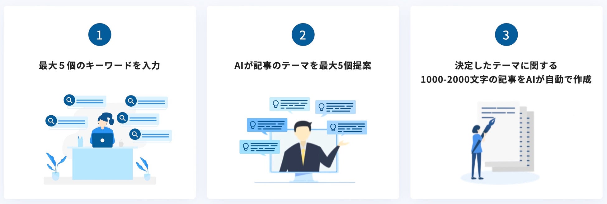 キーワードを指定するだけで、サイトに掲載する記事を自動で作成します。