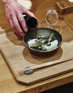 天の川に見立てた稲庭うどんに塩焼きした稚鮎を乗せ、冷やした出汁をかけ、織姫と彦星の再会をイメージしました。