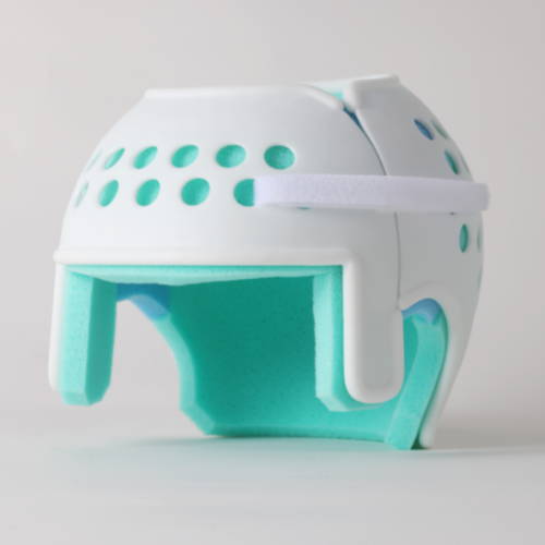 脳神経外科、小児科、新生児科、小児外科、形成外科の先生方からの監修を受け、従来の医療的デザインとは一線を画す、日常にとけこむデザインを目指して開発。さらに、ヘルメットシェル・クッションの水洗いができ、清潔な状態を保てるのが特徴。2021年2月に医療機器承認を取得。2022年グッドデザイン賞受賞。