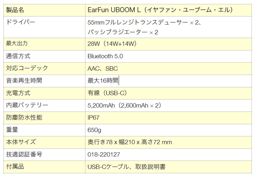 迫力の重低音とタフなIP67防塵防水ワイヤレススピーカー「EarFun UBOOM L」発売、早期購入プログラムも開始