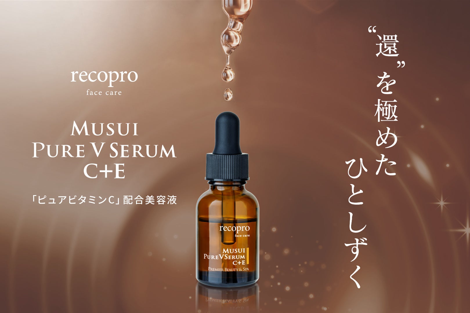 エステティックサロンの運営を行う株式会社プレミア・ビューティ・アンド・スパ (本社:東京都港区、代表取締役社長:近藤 亜美、以下:PBS)は、「生命力がテーマの肌づくり」をコンセプトにしたスキンケアブランド「recopro facecare(リコプロフェイスケア)」から、ピュアビタミンC(アスコルビン酸)の真価を瞬時に届ける革新的な浸透(※1)テクノロジー「PLT」システムを採用した、「ピュアビタミンC」配合美容液『MUSUI PURE V SERUM C+E(ムスイ ピュアVセラムC+E)』を直営エステティックサロン(アユアラングレース・アユアランリンク)並びにECサイト『Premier Beauty Shop』にて8月1日(木)より発売いたします。