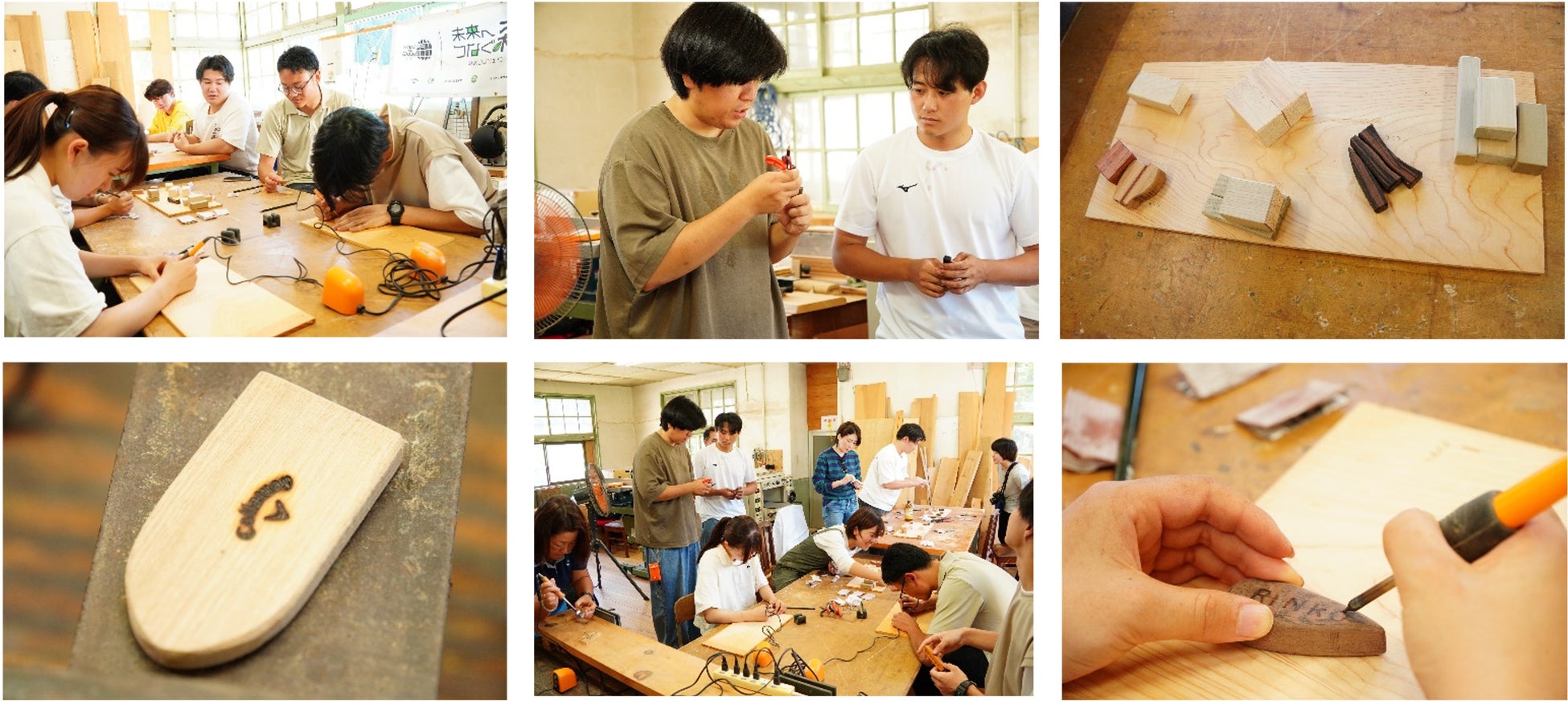 九十九製作所の高橋将人氏の指導のもと、智頭産木材などを活用したネームタグ作りに挑戦。木材を、各々好きな形状に研磨し、自身の名前や模様をあしらい、自分だけのネームタグを完成させました。