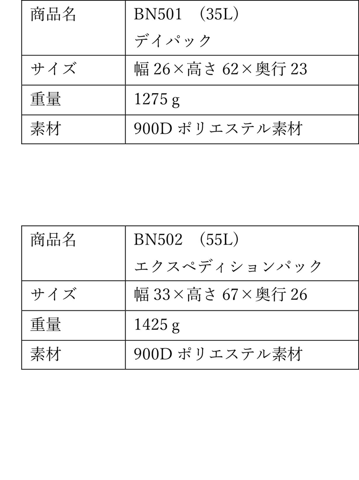 今から約1年前、BN501と502のデザインに着手したとき、私たちが目指したのは、品質に少しも妥協することなく、使い心地、耐久性、バリュー、そして機能性の高いバックパックを作ることでした。この1年で、私たちは上記のすべての条件を満たすバックパックを開発しました。機能性を重視したデザインで、数々のアンカーポイントやポケットなど、冒険に出たときに便利でスマートな機能を備えています。私たちは、この新しいプロジェクトをマクアケで最初に発表できることを非常に誇りに思っています。