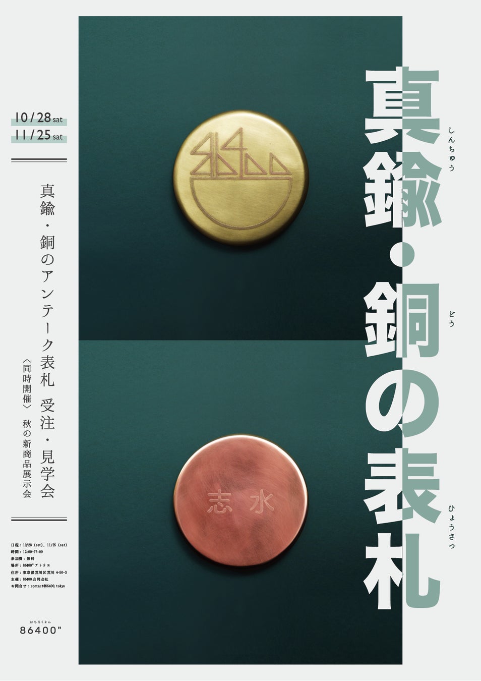 86400"アトリエにて「真鍮・銅の“アンティーク表札” 受注・見学会」を開催します。