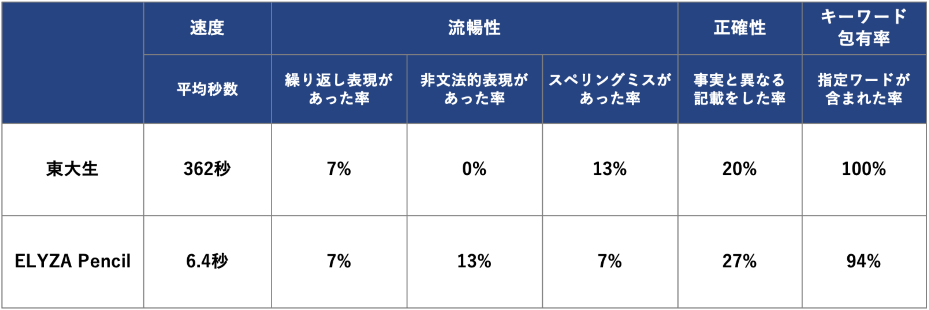 東大生が「100%」、ELYZA Pencilが「94%」であった